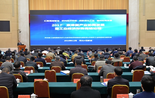 2016年12月29日,2017年京津冀產(chǎn)業(yè)協(xié)同發(fā)展暨工業(yè)經(jīng)濟(jì)形勢高端論壇在石家莊舉辦。論壇由河北省工業(yè)和信息化廳和北京市經(jīng)濟(jì)和信息化委員會(huì)、天津市工業(yè)和信息化委員會(huì)聯(lián)合主辦,論壇主題是:“匯聚高端智慧,研判經(jīng)濟(jì)形勢,把脈河北工業(yè),推動(dòng)協(xié)同發(fā)展”。 論壇邀請了中國工業(yè)經(jīng)濟(jì)聯(lián)合會(huì)會(huì)長李毅中,民生證券副總裁、研究院院長管清友,國家發(fā)改委對外經(jīng)濟(jì)研究所所長張燕生,中國冶金工業(yè)規(guī)劃研究院院長李新創(chuàng)等業(yè)內(nèi)權(quán)威專家,以及工業(yè)和信息化部運(yùn)行監(jiān)測協(xié)調(diào)局副局長黃利斌、北京市經(jīng)濟(jì)和信息化委員會(huì)主任張伯旭、天津市工業(yè)和信息化委員會(huì)副主任谷云彪、河北省工業(yè)和信息化廳廳長龔曉峰等行業(yè)部門領(lǐng)導(dǎo)出席論壇并做主題演講。